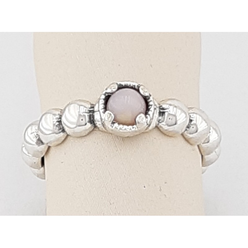 Anillo para mujer en plata de 1ª ley 925 mls de la marca Top Silver, anillo en forma de bolas de 4mm de ancho con una piedra Calcedonia cabujón. Talla 14 tatum.