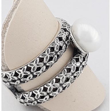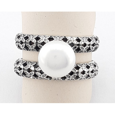 Anillo para mujer en plata de 1ª ley 925 mls de la marca Top Silver, anillo de doble barandilla de flores y perla cultivada de agua dulce con un diámetro de perla 9 mm .