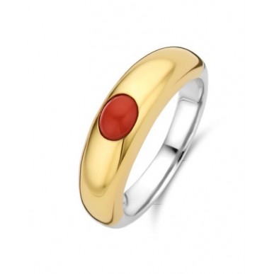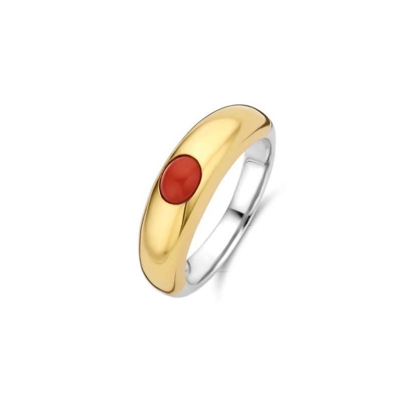 Anillo para mujer ,Este anillo de plata TI SENTO - Milano 12185CR tiene una capa gruesa de oro de 18k y una piedra roja coral vibrante. Está ambientada a mano en un diseño vintage vanguardista pero clásico.Talla númnero 16 tatum.