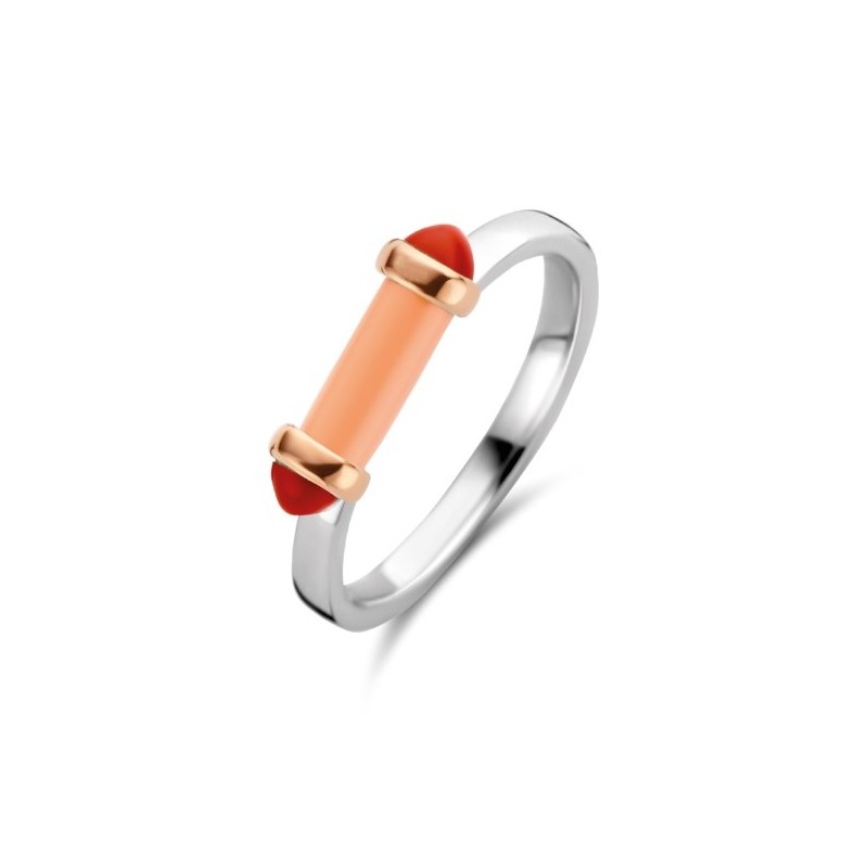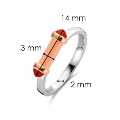 Anillo para mujer ,Este anillo de plata 12224CP de TI SENTO - Milano bañado en oro rosa tiene una piedra en forma de tubo de color rosa coral como pieza central. Dos piedras de color rojo coral decoran sus extremos y están abrazados por engastes chapados en oro rosa. Este recuerdo es un recordatorio para buscar la luz del sol desde adentro. El anillo está hecho de plata de ley 925. Úselo solo o apílelo con otras formas y colores de anillos para crear su propia obra de arte. Talla número 14 tatum