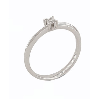 Descripción Modelo: Anillo con 1 Diamante en Oro Blanco modelo solitario Estrella , se denomina Estrella por su forma en la fabricación del la boca donde va engastado el diamante cada garra esta compuesta por tres grapas.
