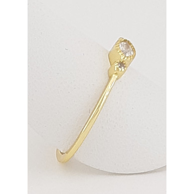 Anillo para mujer en plata de 1 ª ley 925 mls con baño de oro amarillo, con tres circonitas blancas engatadas y aro redondo liso de 1 mm de diámetro . Talla 12 tatum