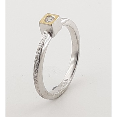 Anillo fabricado en plata, oro de 18k y diamante talla brillante