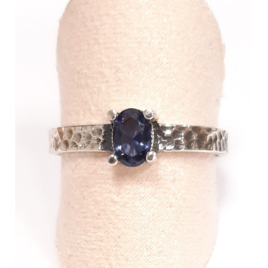Anillo para mujer en plata de 1ª ley 925 mls de la marca Top Silver, Anillo con Textura y Piedra Oval Central en color azul.