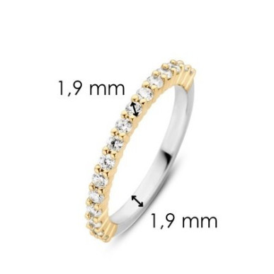 El anillo TI SENTO - Milano 1918ZY está elaborado con plata bañada en oro. El color de este anillo es Circonita chapada en oro amarillo blanco. Todas las joyas de TI SENTO - Milano están envueltas para regalo con infinito amor y cuidado. La magia está en nuestra Plata.Talla número 14 tatum