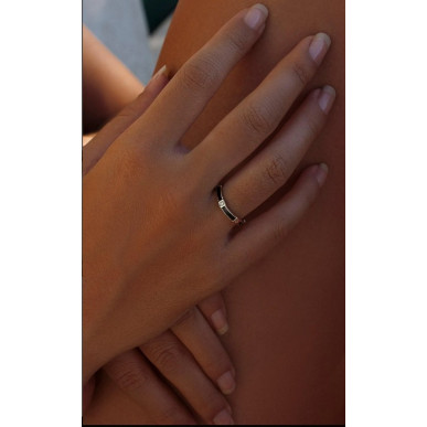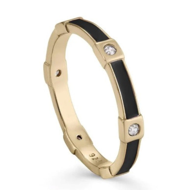 Anillo fino esmalte de plata para mujer. El diseño que tus estilismos estaban esperando. Anillo fino de plata bañada en oro diseño escalonado en esmalte negro y detalle de circonitas sobrepuestas. Perfecto para lucir junto a los pendientes a conjunto. Medida 15 tatum