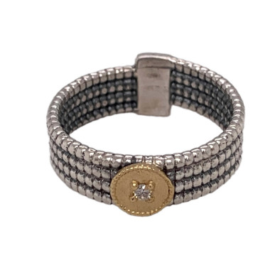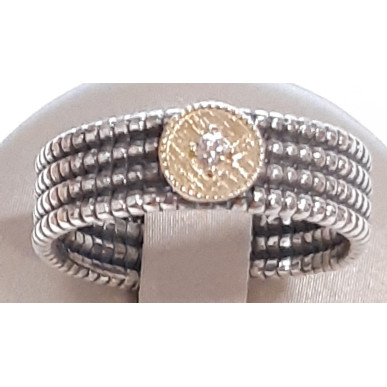 Anillo para mujer en plata de 1ª ley 925mls y circulo central en oro amarillo de 1ª ley 750mls , y con un diamante talla brillante de un peso total de 0.025ct G/VS