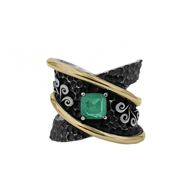 Sortija Plata 925/000 y oro laminado de 18K y Doblete Cuarzo Esmeralda. Este anillo ha sido diseñado por Antonio Espaliú y está elaborado artesanamente en nuestros talleres de Córdoba.