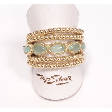 Anillo para mujer en plata de 1ª ley 925 mls y con baño de oro amarillo de la marca Top Silver, anillo con cuatro tiras en bolitas y una tira central con piedras de color.