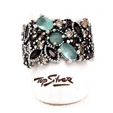 Anillo para mujer en plata de 1ª ley 925 mls de la marca Top Silver, con circonitas de colores .