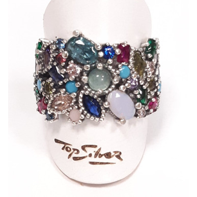 Anillo para mujer en plata de 1ª ley 925 mls de la marca Top Silver, con circonitas de colores .