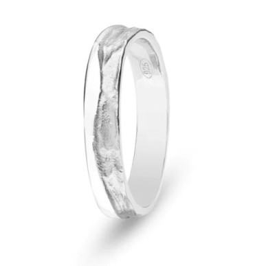 Zaria es la diosa de la belleza en la mitología eslava y es el nombre que le hemos dado a esta alianza. Una línea irregular divide el anillo en dos acabados: una parte pulida y otra con textura mate. El interior es pulido para grabarlo con lo que os apetezca.
