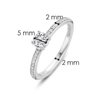 Anillo TI SENTO con pavé de circonitas. La circonita grande está engastada en un engaste solitario para darle más brillo. Este anillo está chapado en rodio y se puede combinar con otros anillos de la serie TI SENTO Mix & Match. ¡Crea tu propio anillo!