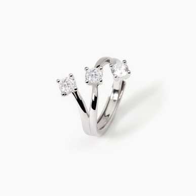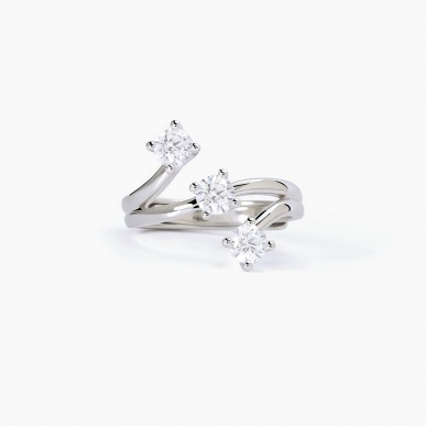 Anillo de mujer en plata rodiada con tres circonitas blancas.