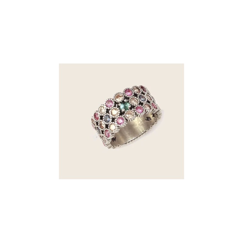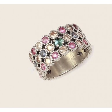 El anillo de la colección JOVIAN 35 está fabricado a mano, en plata de ley, con piedras calcedonia, cuarzo azul , rodolita , Champagne. Ancho de 10.50mm talla núm 18 tatum