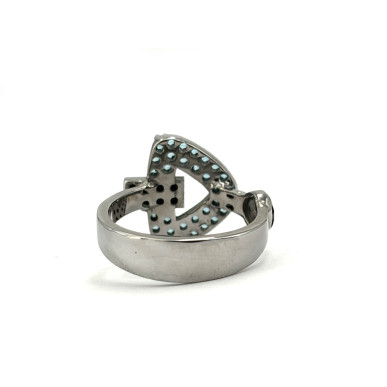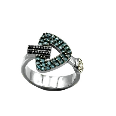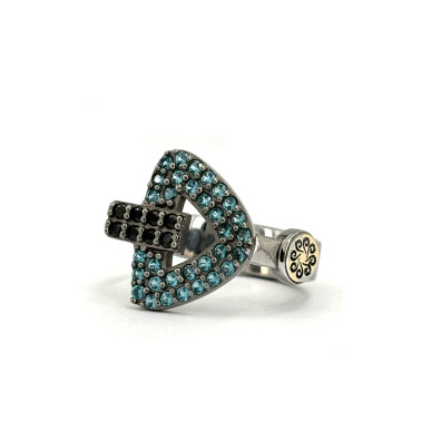 Este anillo o sortija fusiona la exquisitez de la plata y el oro de 18K con la magia de las circonitas color Paraíba y las Espinelas negras. Este contraste de colores se convierte en el protagonista esencial de esta joya y añade un toque exclusivo a tu “outfit”.