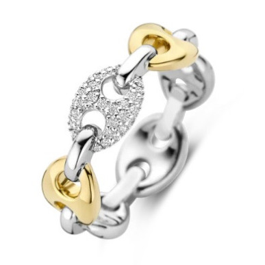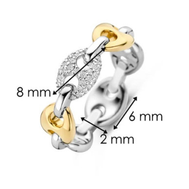 Disfrute de la elegancia atemporal con nuestro anillo de grano de café en plata bañada en oro TI SENTO 12256ZY. Esta pieza única reinventa un símbolo clásico con un toque moderno. Elaborado en plata de ley 925 y bañado en platino precioso para un brillo duradero, el anillo presenta nuestras icónicas formas de grano de café. Cada grano está elaborado meticulosamente: uno bañado en oro amarillo brillante, otro adornado con un pavé brillante de circonitas cúbicas. Una fusión de simbolismo antiguo y diseño contemporáneo, este anillo es una pieza llamativa que realza sin esfuerzo cualquier atuendo. El grano de café, un símbolo de energía y nutrición, adquiere un nuevo significado como símbolo de estilo y sofisticación. Deje que este anillo sea el punto focal de su conjunto. Llévelo solo para una declaración audaz o apílelo con otros anillos TI SENTO para crear un estilo personalizado que rezuma elegancia sin esfuerzo. Elaborado con cuidado para la piel sensible, este anillo hipoalergénico y sin níquel garantiza comodidad y calidad duraderas.