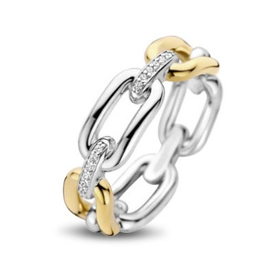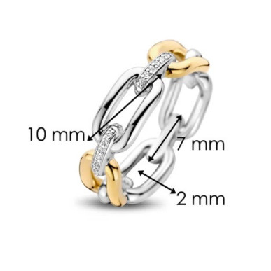 Disfrute de una opulencia refinada con este anillo de eslabones de plata bañada en oro TI SENTO 12205YS. Esta sofisticada pieza presenta una cautivadora interacción de plata y oro amarillo, con eslabones alternados de plata clásica y baño de oro amarillo radiante. Elaborado con precisión a partir de plata esterlina 925, el anillo irradia una sensación de elegancia moderna. El baño de platino en la plata garantiza un acabado duradero y luminoso. Este anillo es un testimonio del arte del diseño de joyería contemporánea, que combina metales contrastantes para lograr un efecto sorprendente. Es una pieza llamativa que realza sin esfuerzo cualquier atuendo. Realce su estilo con este lujoso accesorio. Llévelo solo para una declaración audaz o apílelo con otros anillos TI SENTO para crear un estilo personalizado y de alta moda. Elaborado con cuidado para la piel sensible, este anillo hipoalergénico y sin níquel garantiza comodidad y calidad duraderas.
