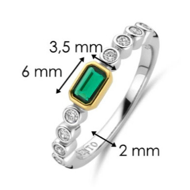 Descubra una cautivadora combinación de elegancia y modernidad con este anillo de plata bañado en oro TI SENTO 12340EM. Fabricado en plata de ley 925 y bañado en platino para un brillo duradero, este anillo es una auténtica pieza de diseño. Una deslumbrante hilera de piedras de circonita cúbica blanca crea una base resplandeciente, mientras que una llamativa circonita cúbica de talla baguette de color verde esmeralda, engastada en una lujosa montura bañada en oro amarillo, ocupa el centro del escenario. El contraste entre las piedras transparentes y el verde vibrante, calentado por el engaste de oro, crea un efecto hipnótico. Este anillo es una fusión perfecta de diseño clásico y contemporáneo, que añade un toque de lujo a cualquier conjunto. Realce su look con este sofisticado accesorio. Llévelo solo para una declaración audaz o apílelo con otros anillos para un look personalizado y moderno. Elaborado con cuidado para la piel sensible, este anillo hipoalergénico y sin níquel garantiza una comodidad y una calidad duraderas.