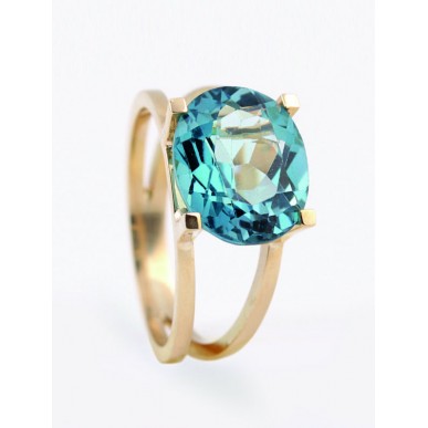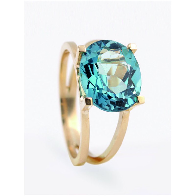 Anillo de oro amarillo 18kt 750mls doble aro plano con topacio azul oval 10×12 mm.