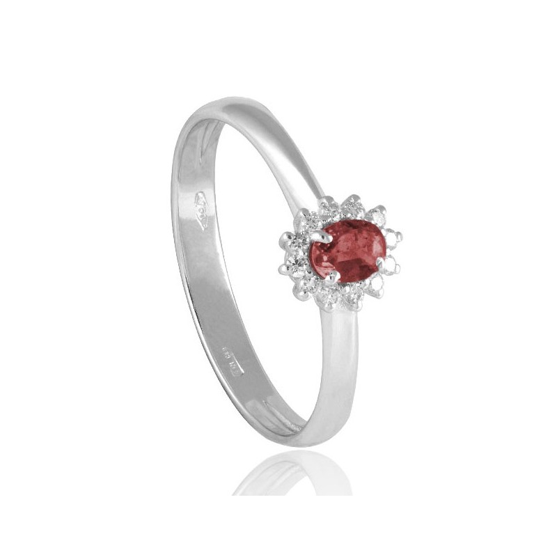 Artículo: Anillo con 1 rubi y 12 diamantes en Oro Blanco 18kt