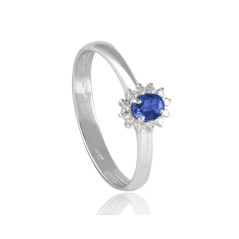 ANILLO CON 1 ZAFIRO AZUL Y 12 DIAMANTES EN ORO BLANCO