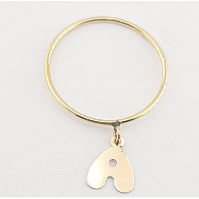 Anillo en oro de 1ª ley 18 qtes 750mls , anillo con inicial colgante en oro amarillo ,hilo de oro 0,80mm de grueso, inicial medida 8,5x6,5mm conanilla incluida, Se puede fabricar con la inicial que necesites , plazo de entrega 5 días habiles.