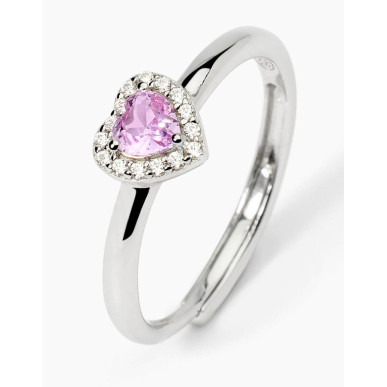 Anillo ajustable para mujer en plata rodiada con turmalina sintética en talla corazón y circonita blanca. • Tamaño de turmalina sintética: 4 x 4 mm • Diámetro de la circonita: 1 mm • Tamaño ajustable del tamaño 11 al 19 • Material: Plata 925, Turmalina sintética, Circonita