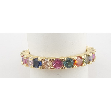 Anillo para mujer en plata de 1ª ley 925 mls con baño de oro amarillo de la marca Top Silver, con circonitas de colores talla redonda . Anillo ancho 3.40mm,