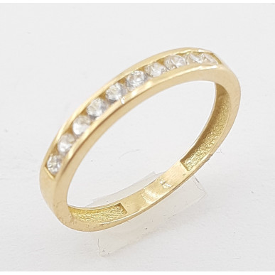 Anillo para mujer en oro amarillo de 1ª ley 18ktes 750mls. modelo anillo de carril con diez circonitas blancas engastadas , medida 14 Tatum , ancho del anillo 2.80mm.
