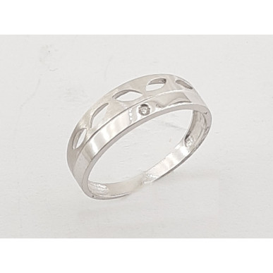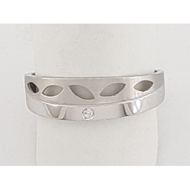 Anillo fabricado en oro balnco de 1ª ley 18ktes 750mls ,anillo con terminado en mate y brillo y con un diamante talla brillante de peso 0.009 , ancho del anillo 5.40mm aro en definición y calado en forma de hoja.