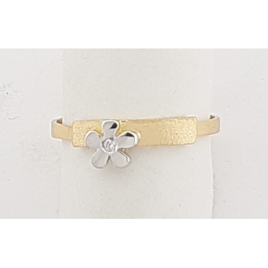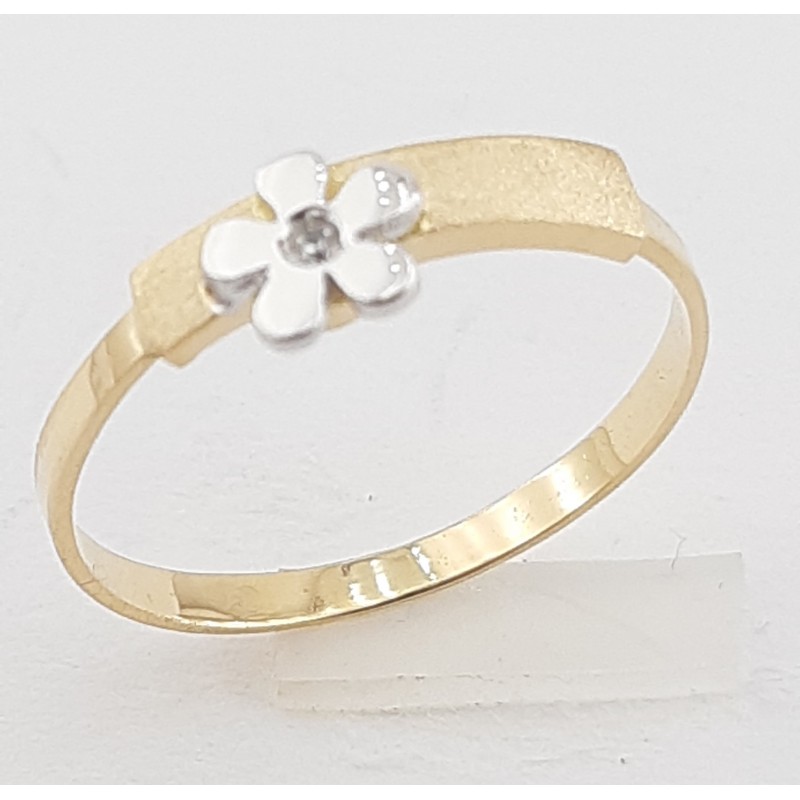 Anillo fabricado en oro bicolor de 1ª ley 18ktes 750mls ,anillo bicolor y con una flor en oro blanco y una circonita blanca central en la flor y la parte superior en matizado oro amarillo.