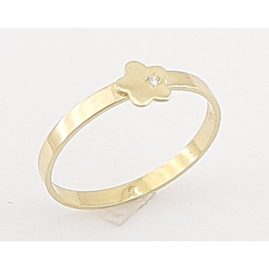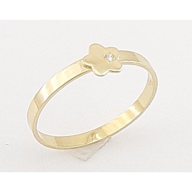 Anillo fabricado en oro amarillo de 1ª ley 18ktes 750mls ,anillo con una flor y una circonita blanca , aro plano de 1.95mm de ancho . talla 13 tatum