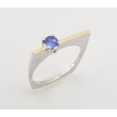 Anillo fabricado en plata rodiada, oro de 18k y tanzanita