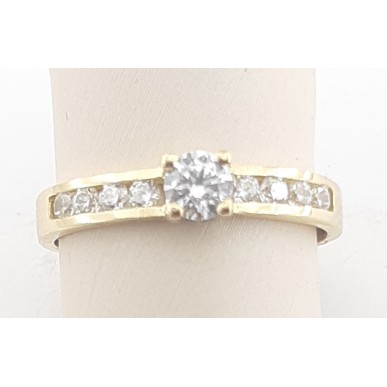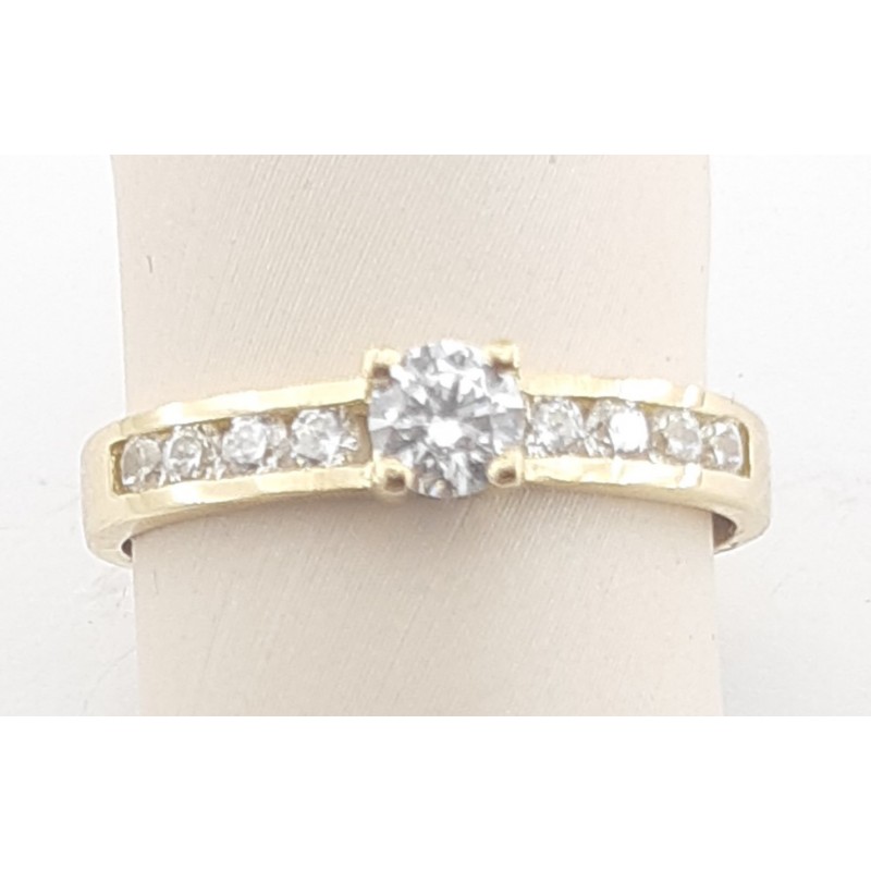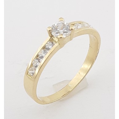 Anillo fabricado en oro amarillo de 1ª ley 18kilates 750mls , modelo solitario con circonitas en carril , talla 14 tatum