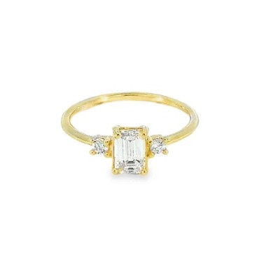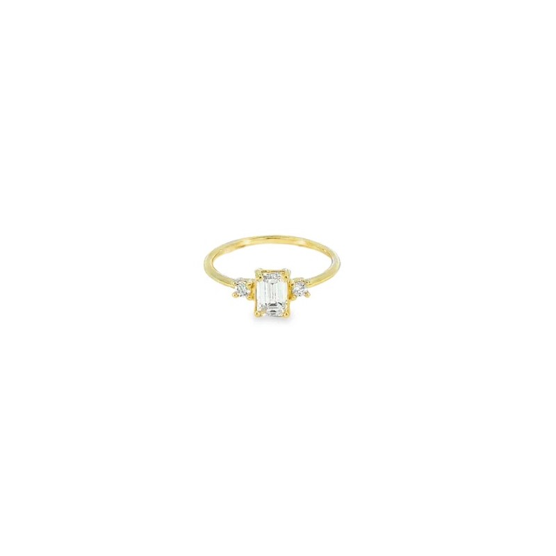 • 1 diamante de laboratorio talla rectángulo de 6x4 mm • 2 diamantes talla brillante redonda de 2,25 mm