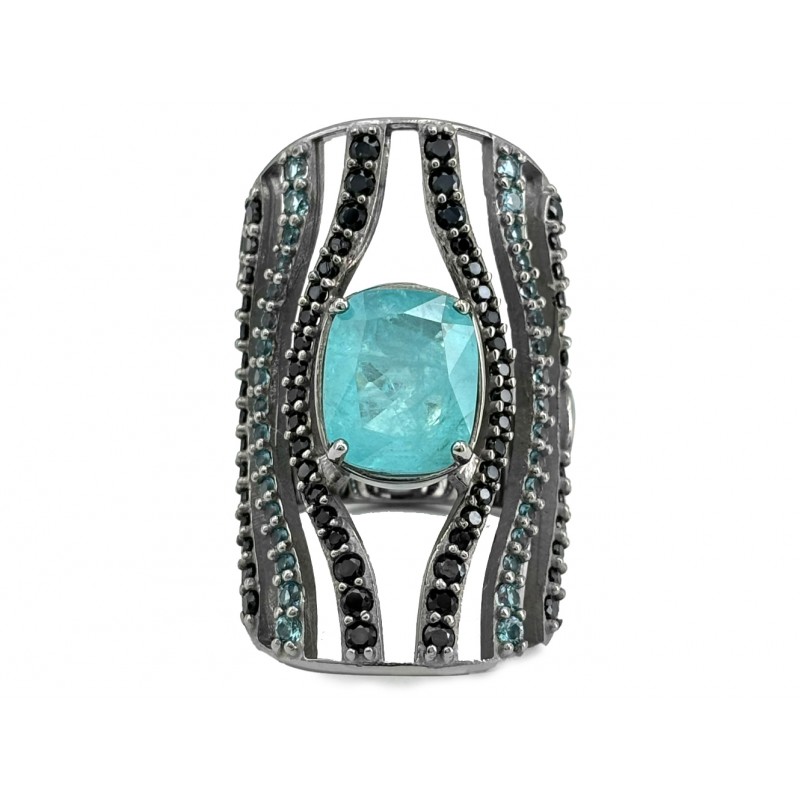 Este anillo fusiona la exquisitez de la plata y el oro 18K con la magia de los dobletes de cuarzo Paraíba. La piedra principal con su resplandor único se convierte en el centro de atención, capturando la esencia del agua del Caribe y añadiendo un toque exclusivo y exótico a tu “outfit”.