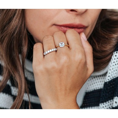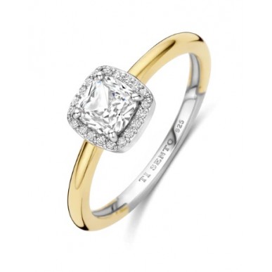 Acerca de esta joya Eleva tu elegancia diaria con este anillo TI SENTO 12388ZY de plata chapada en oro. Elaborado en plata de ley 925, el anillo combina dos acabados: un radiante chapado en oro amarillo en la curva superior y platino brillante como un espejo en la parte inferior, creando un refinado juego de calidez y brillo frío. En su centro se encuentra una circonita cúbica blanca de talla fantasía de 7 mm, rodeada por un microhalo de piedras pavé que amplifican la profundidad luminosa de la gema. Su perfil delgado se desliza fácilmente junto a otros anillos apilables, pero también aporta un toque de elegancia discreta cuando se usa solo. Sin níquel e hipoalergénico, el anillo combina un brillo duradero con comodidad para usar todo el día