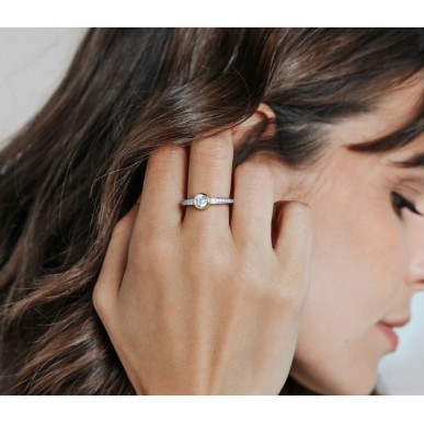 Ancho: 2 mm Diámetro de la piedra: 7 mm Ancho de banda inferior: 2 mm Material: Plateado Tipo de piedra: Zirkonia Color: Zirconia blanca bañada en oro amarillo