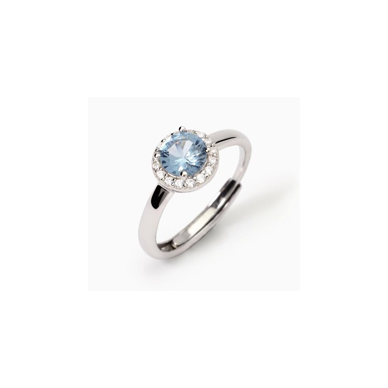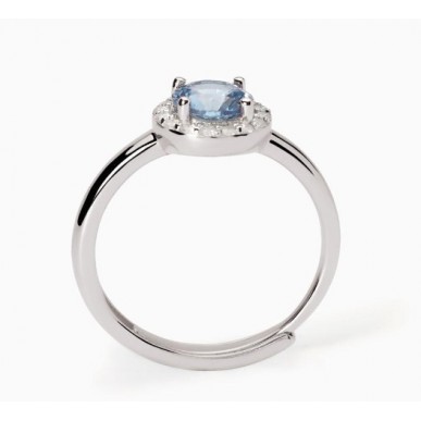 Descripción del Producto Anillo ajustable para mujer en plata rodiada con aguamarina sintética y circonitas. • Diámetro de la aguamarina sintética: 6 mm • Diámetro de la circonita: 1,25 mm • Talla ajustable, de la 11 a la 19 • Material: plata 925, aguamarina sintética, circonitas
