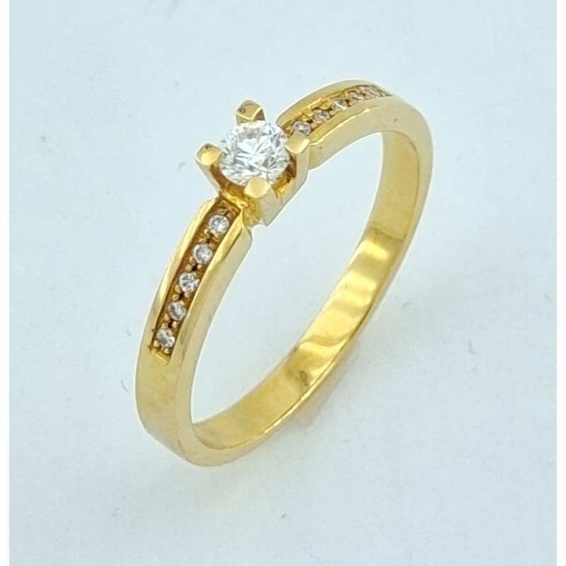 Descripción Modelo: Anillo con 1 Diamante central y 10 diamantes engasrados en los laterales del aro talla brillante en Oro amarillo .