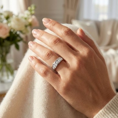 Anillo de compromiso fabricado en oro blanco 18k diamantes 0,77 cts: Fabricado en oro blanco de primera ley, con diamantes talla brillante engastados en carril, con 0.77 cts de peso total y color Blanco Wesselton H y pureza VS1. Acabado pulido.