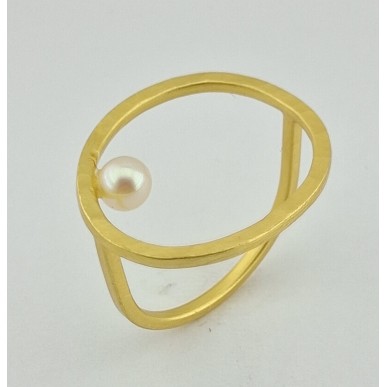 Anillo para mujer colección TRAVESA fabricado artesanalmente en plata de 1ª ley 925 mls con baño de oro amarillo , con una perla cultivada de 4,50mm de diámetro, terminado en martele de medida anchoxalto 22,00 x 19,00mm , talla del anillo nª 15 tatum