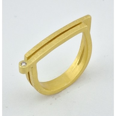 Anillo para mujer de la colección MONDRA fabricado artesanalmente en plata de 1ª ley 925 mls con baño de oro amarillo con doble barra y con un diamante de LABORATORIO , terminado en mate satinado, de medida largo x ancho 25,75 x 3.50mm , talla nº15 tatum