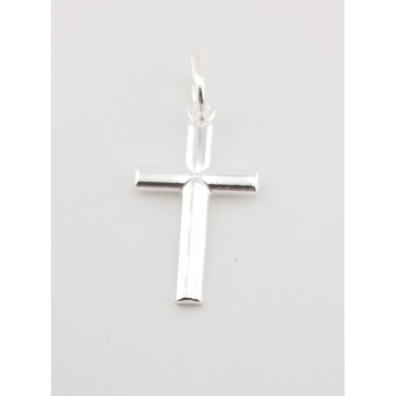 Colgante cruz en plata natural de 1ª ley 925 mls , esta cruz esta realizada maciza con un tamaño de largo 20 mm y ancho 12 mm,.