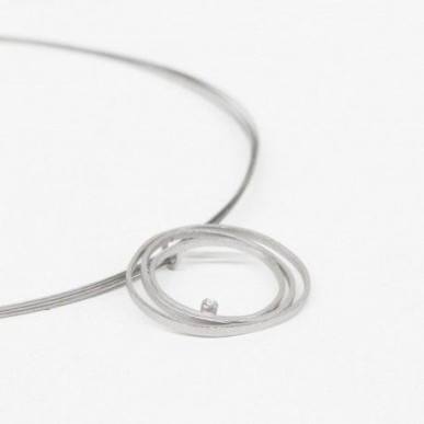 Este colgante de diseño está realizado en plata de ley con acabado diamantado y baño de rodio (con este baño conseguimos que la plata no se ensucie).