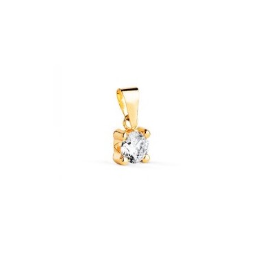 Colgante en oro amarillo de 1ªley 18ktes 750mls con circonita blanca de 4mm de diámetro con 4 garras ,largo total con anilla incluida 10,50mm