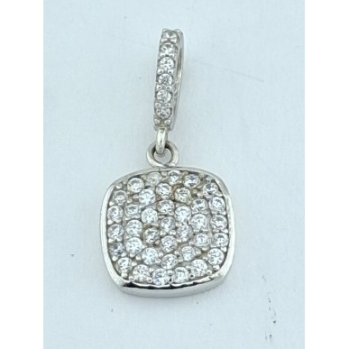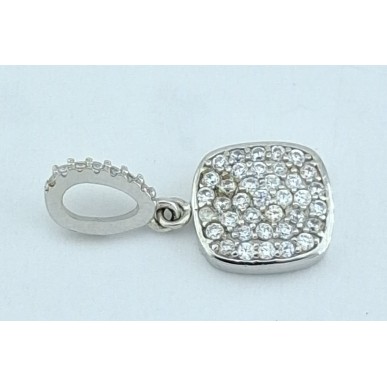 Colgante para mujer fabricado en oro blanco de 1ª ley 18kilates 750mls , colgante en forma cuadrada de medida 9,30x9,30mm , largo total con anilla 20,00mm y con 44 circonitas blancas.