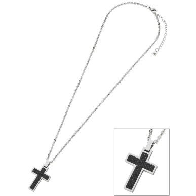 Collar para hombre con colgante de cruz en acero bicolor en Ip Negro y cadena de 45 + 5 cm. La cadena es tipo forzada con un grosor de 2.3 mm