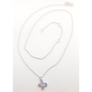 Collar AGATHA RUIZ DE LA PRADA modelo MARIPOSA RAINBOW fabricadas en plata de 1ª ley 925 mls , con baño de rodio para dar mayor resistencia, la joya de plata que recibe una capa de rodio posee una vida útil más larga y con colgante de mariposa de circomitas de colores .